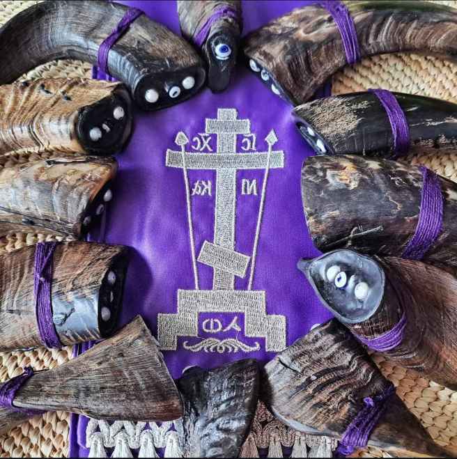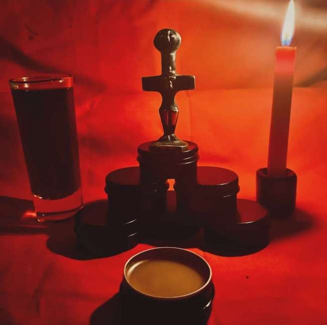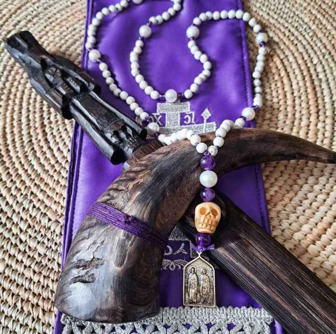 One charm bag for keeping away the hungry dead, malefica, and witchcraft, and empowering the protective dead. Shipping included. All proceeds will be donated to different sources that have informed Sfinga’s Cyprianic practice, be they teachers, temples, or churches.