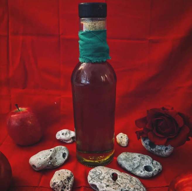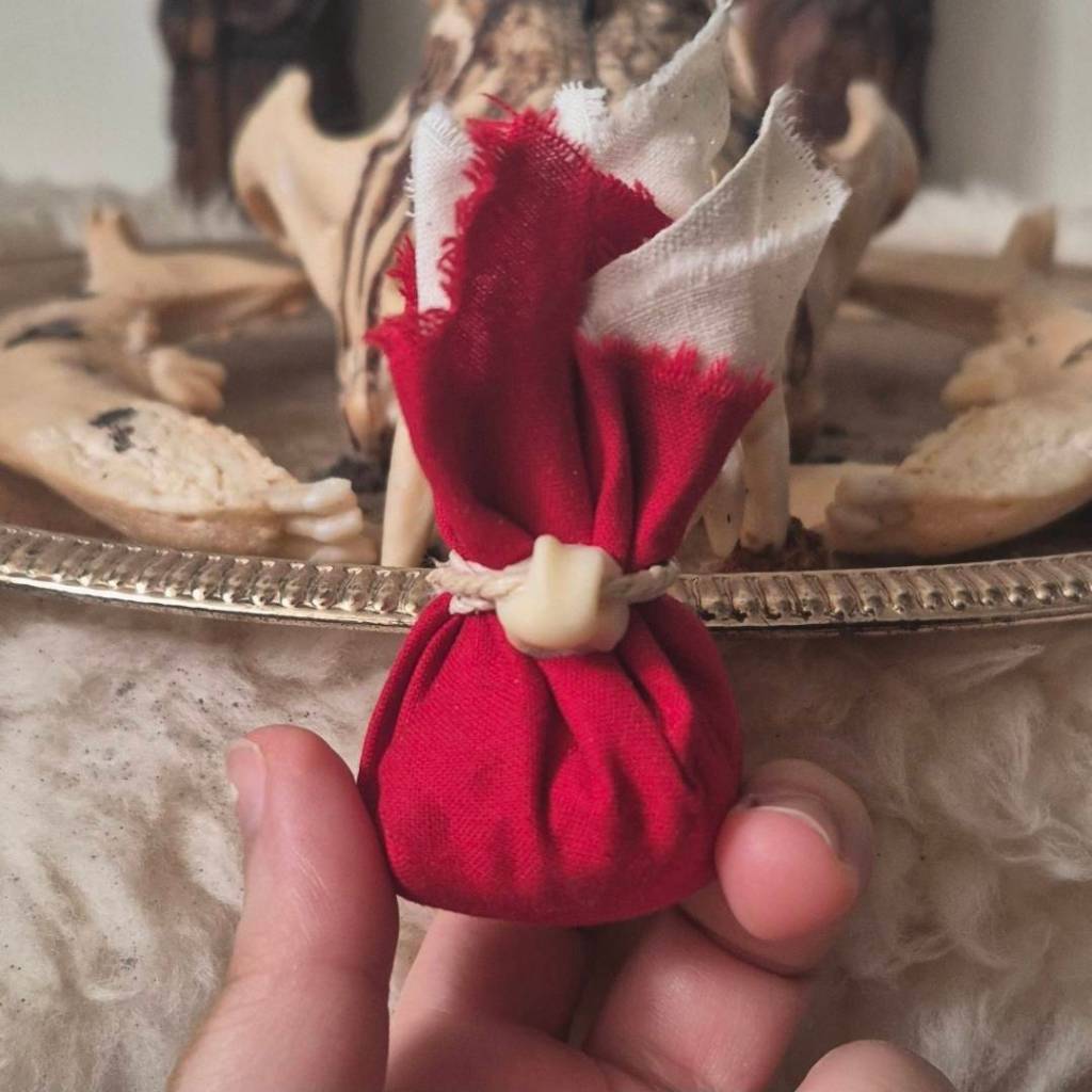 1 fluid ounce / 30 milliliter amber glass dropper bottle, draped in red cloth and secured as a devotional object of ritual use. Price includes shipping. Created by B. Key.